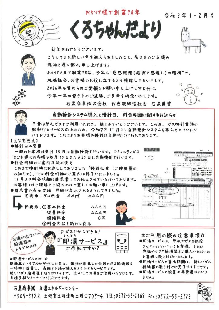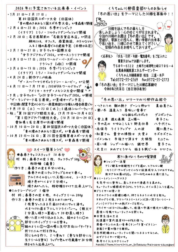 今年最初の「くろちゃんだより」では、2026年に予定されている出来事や
