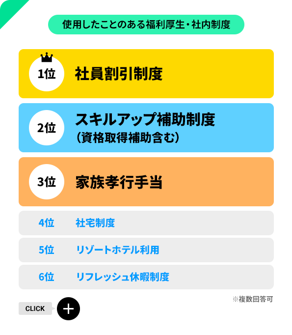 コメダ珈琲店での飲食や、灯油・ガソリンなど、生活に密着した様々な社割があるからか、社員の9割以上が利用したことがある結果となりました!