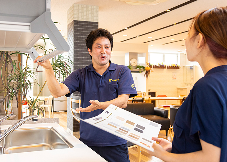 住宅リフォームはお客様のご要望に基づいて提案内容を作り上げる仕事ですが、現場の状態、設置する機器の種類・工法は千差万別で、1つとして「全く同じリフォーム工事」はありません。模範解答がない中で、大切なのは「お客様の生活にとって何がベストなのか」を考え抜くことだと思います。過去の事例や知識をそのままあてはめるのではなく、お客様一人ひとりと徹底的に向き合い、ニーズを反映したプラン作りを行っています。